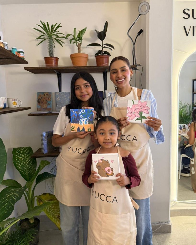 En YUCCA cualquier persona puede pintar un lienzo, intervenir una totebag o moldear cerámica, siempre acompañada por especialistas que guían cada paso, desde el boceto hasta la pieza final. Todos los talleres incluyen materiales, creando un entorno cómodo y accesible para que cualquiera —sin importar su nivel— pueda disfrutar del arte.