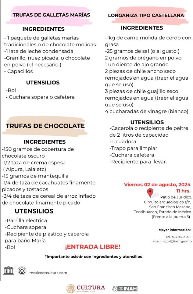 Este taller es una oportunidad única para aprender nuevas recetas y disfrutar de una experiencia culinaria en un entorno único. ¡Siéntase libre de invitar a sus vecinos o a quien desee acompañarle! ¡Esperamos verle allí y compartir juntos esta deliciosa actividad